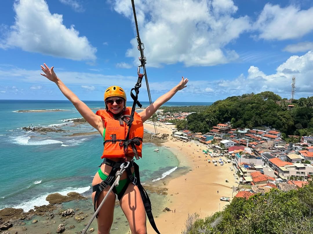A tirolesa de Morro de São Paulo é uma das experiências mais emocionantes da ilha! Com cerca de 70 metros de altura, a descida começa no Farol e termina nas águas cristalinas da Primeira Praia. Enquanto desliza pelo ar, você sente a adrenalina e aprecia uma vista espetacular do mar azul e das praias paradisíacas. Uma aventura inesquecível para quem busca emoção e um dos visuais mais incríveis de Morro de São Paulo!