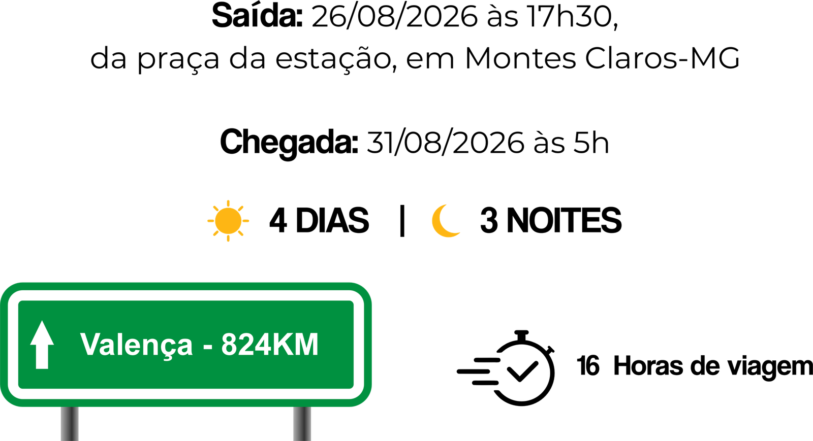 e saída pontualmente às 18h00 com destino a Morro de São Paulo-BA