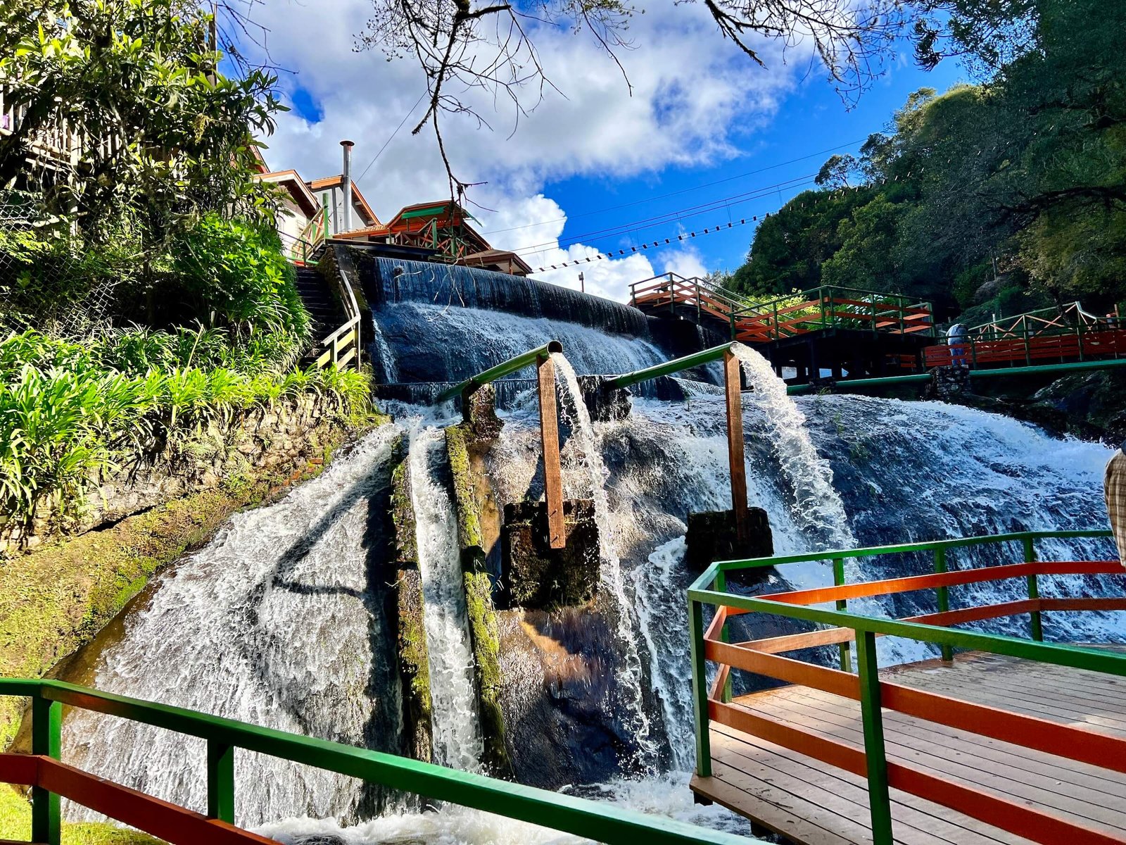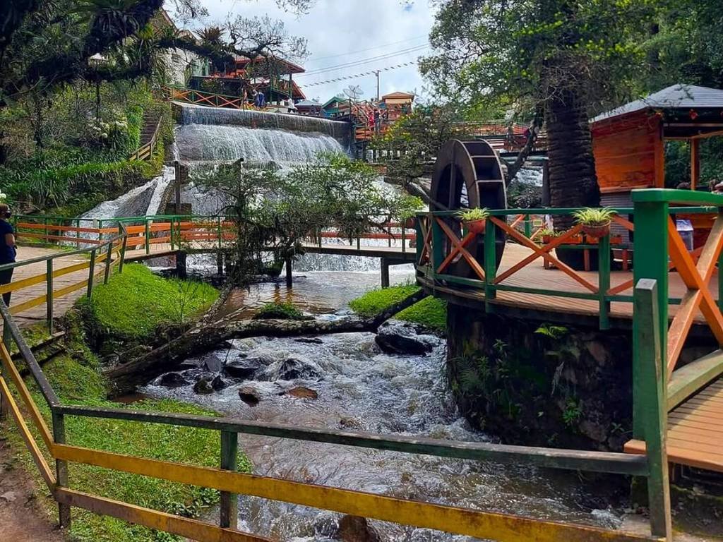 A Ducha de Prata é um dos passeios mais tradicionais de Campos do Jordão. Cercada por natureza, o espaço tem quedas d’água artificiais, passarelas de madeira, lojinhas de artesanato e aquele clima de serra que convida a desacelerar. É um lugar leve, agradável e perfeito para fotos, caminhadas tranquilas e para sentir de perto o charme natural da cidade. Um passeio simples, mas que encanta e sempre entra na lista dos imperdíveis.
