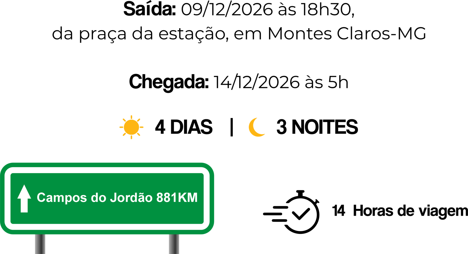 e saída pontualmente às 18h30 com destino a Campos do Jordão
